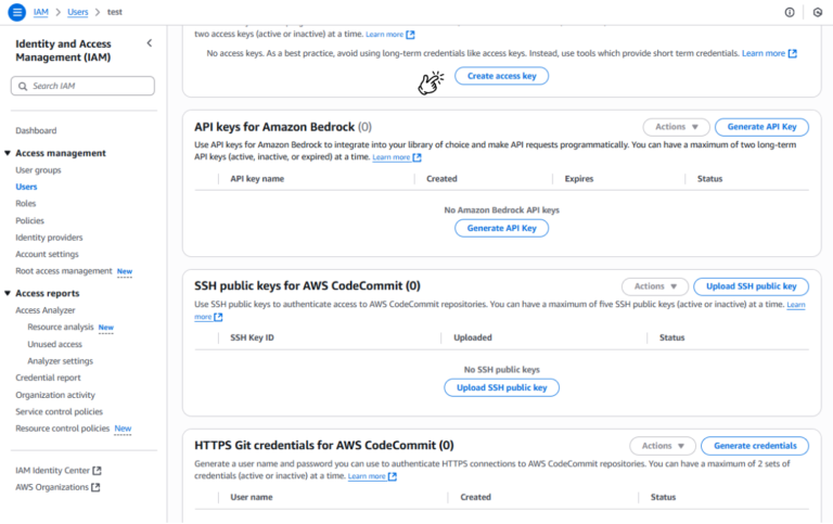 3. Tạo khóa truy cập (Access Key):