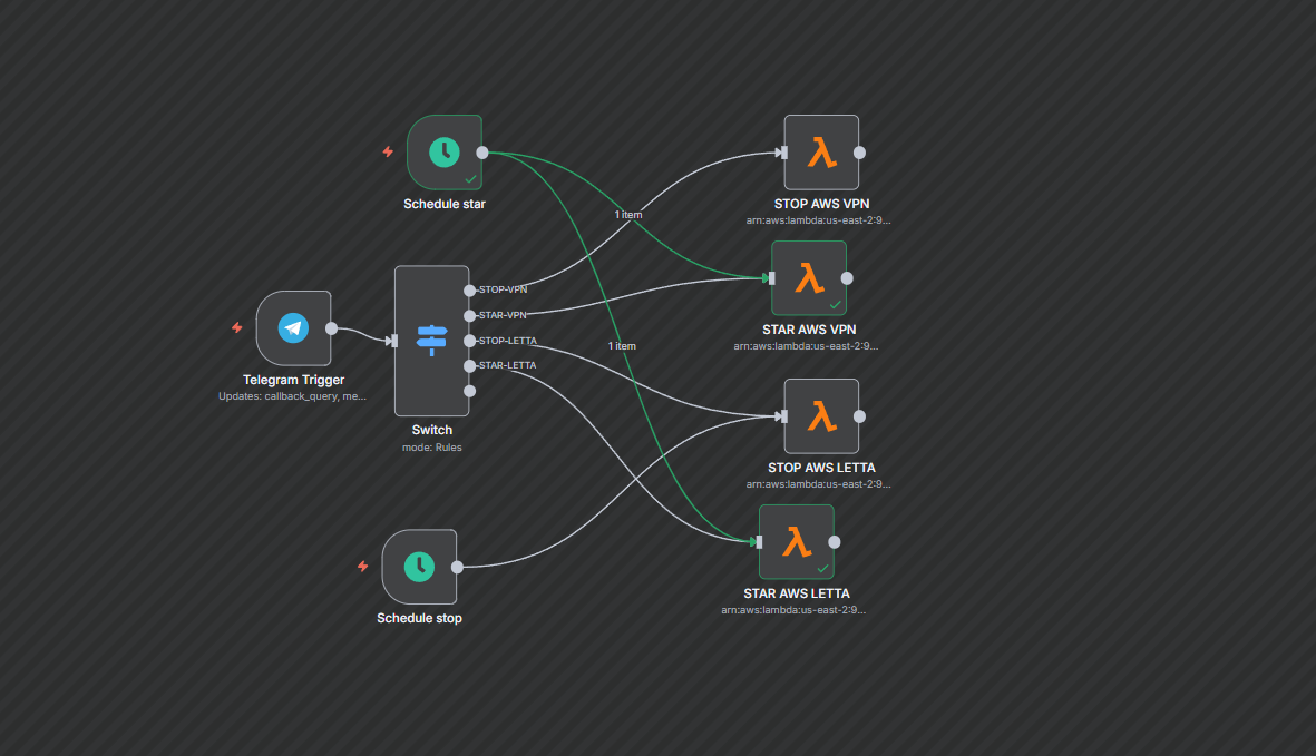 • Thêm node AWS Lambda và kết nối nó với node Schedule Trigger.